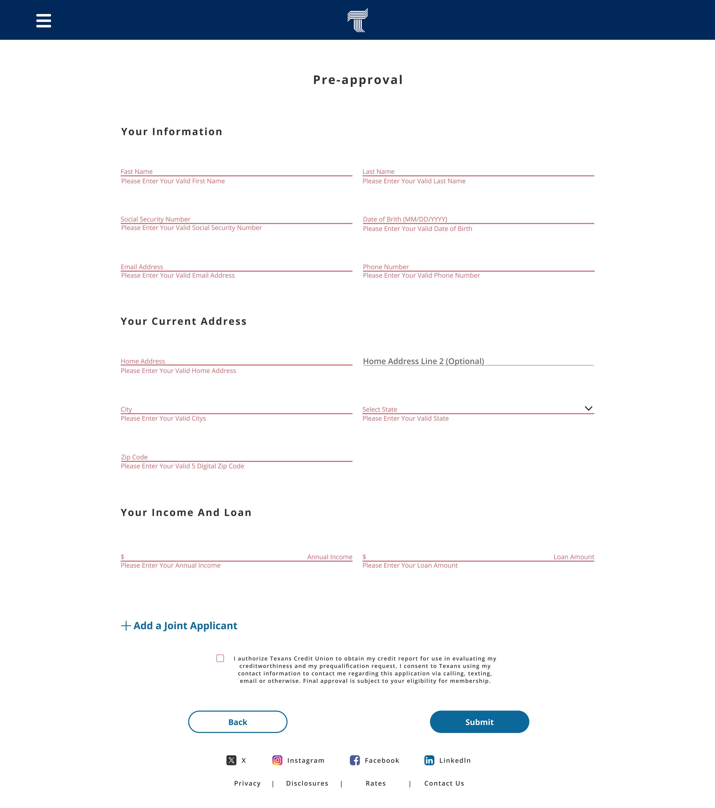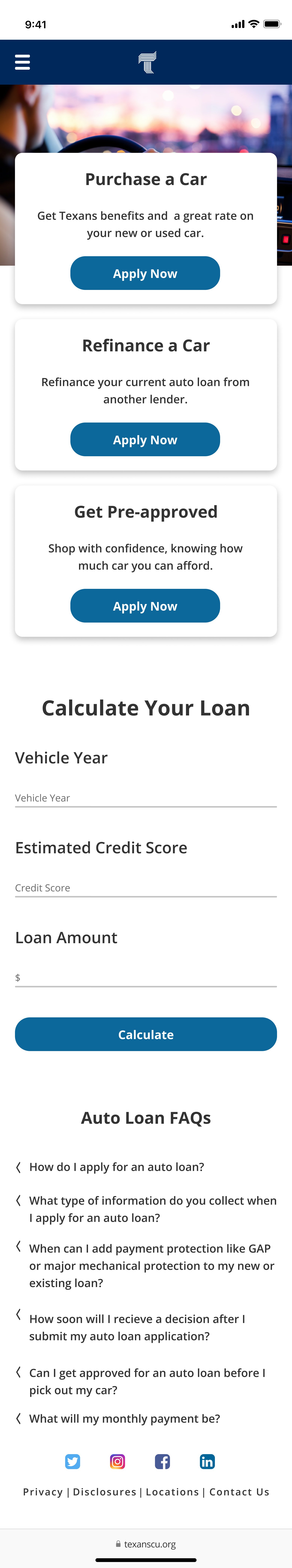 As the inaugural UX designer at Texans Credit Union, I played a pivotal role in transforming the loan application workflows for a range of loan types, including auto loans, personal loans, credit cards, home equity loans, and RV loans. Collaborating closely with an engineer, we meticulously redesigned the entire loan application platform, focusing on improving user experience and streamlining the application process. After the new platform went live, I was thrilled to witness its remarkable impact on the auto loan applications, as the pull-through rate surged by an impressive 15% within just four months. This significant boost not only highlighted the effectiveness of our redesign but also underscored the value of a user-centric approach in driving tangible and positive outcomes for Texans Credit Union.