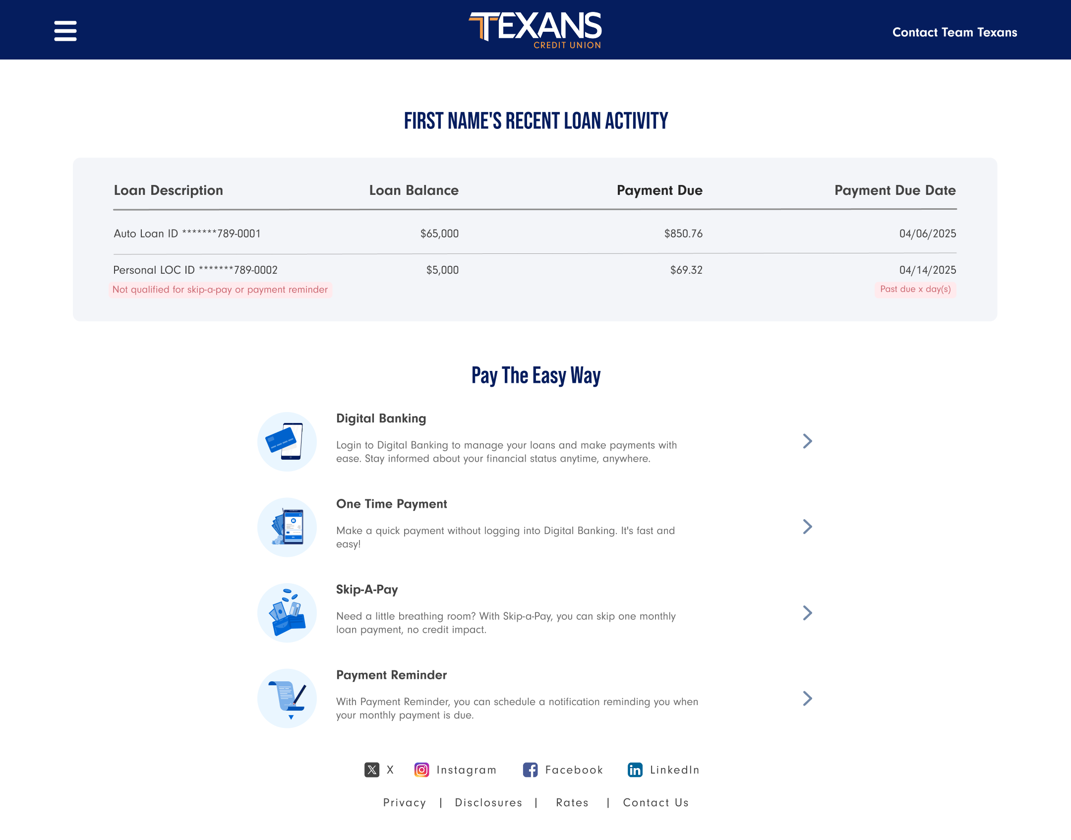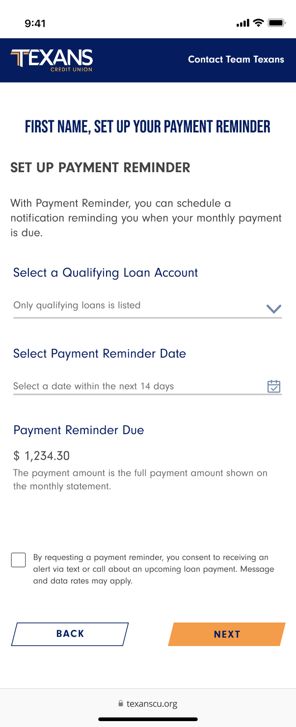 Designed a centralized platform that allows members to manage loan payments through a secure link delivered via text message. Users can quickly access the experience to make one‑time payments and set up payment reminders, helping them stay organized and avoid missed deadlines. The solution emphasizes simplicity, accessibility, and ease of use to create a smooth and stress‑free payment experience.