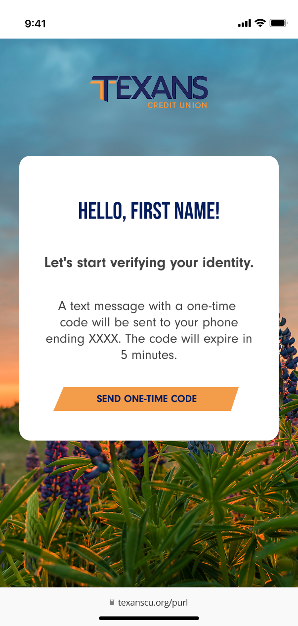 Mobile View-Send One Time Code Page